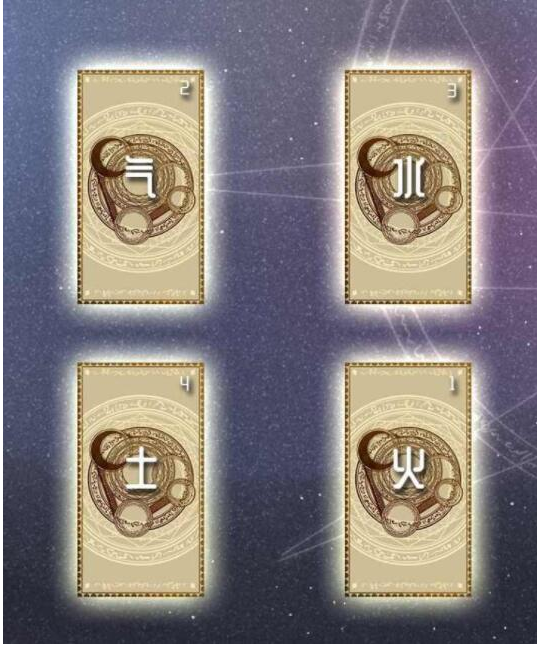 所谓四"要素",指的就是气、火、水、土等西方占星术里的四大元素;是塔罗牌小阿卡那牌的四大元素组。这种推测法是利用四种元素的基本特性,专门为想了解如何解决某件事的求问者提供解释的摆法。求问者要先描述清楚自己目前面临的困难,以及想得到的结局。